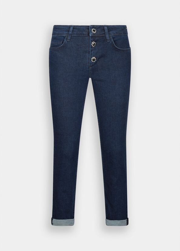 - Jean cropped en toile denim de coton stretch